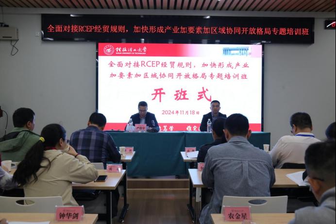 11月18日,“全面对接RCEP经贸规则,加快形成产业加要素加区域协同开放格局”专题培训班在伟德官网顺利开班。南宁市商务局党组成员、副局长严浩宇,伟德国际1946bv官网院长周国桥以及来自南宁市商务局、南宁市相关市直单位、县(市、区)商务部门的50位业务骨干参加了开班式。