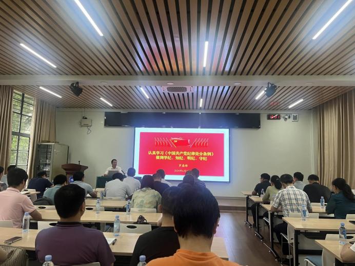 罗盛锋同志以《认真学习〈中国共产党纪律处分条例〉做到学纪、知纪、明纪、守纪》为题给广大党员讲授了一堂“提神醒脑”的警示教育党课。党课围绕“《条例》修订的历史沿革及重要意义 ”“《条例》修订的主旨要义”“《条例》修订的主要内容” “恪守‘六大纪律’,做合格党员”“抓好《条例》的贯彻执行”等五个方面,结合各部门实际,进行了全面、系统的解读。党课主题鲜明、重点突出、条理清晰、案例翔实,既有深入浅出的理论阐述,又有实践层面的对策思考,既是一堂深刻的党纪学习教育纪律党课,更是一堂生动的党性修养教育党课。