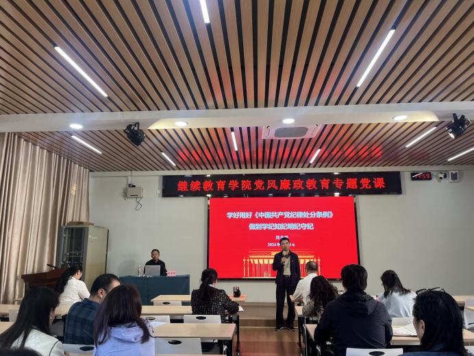 为进一步推进党纪学习教育走深走实、取得成效,11月8日下午,学院邀请自治区纪委监委驻校纪检监察组副组长,学校纪委副书记周章明同志在教十楼10208讲授廉政教育专题党课,全院教职工、合作办学单位负责人参加学习,党支部书记、学院院长周国桥主持会议。