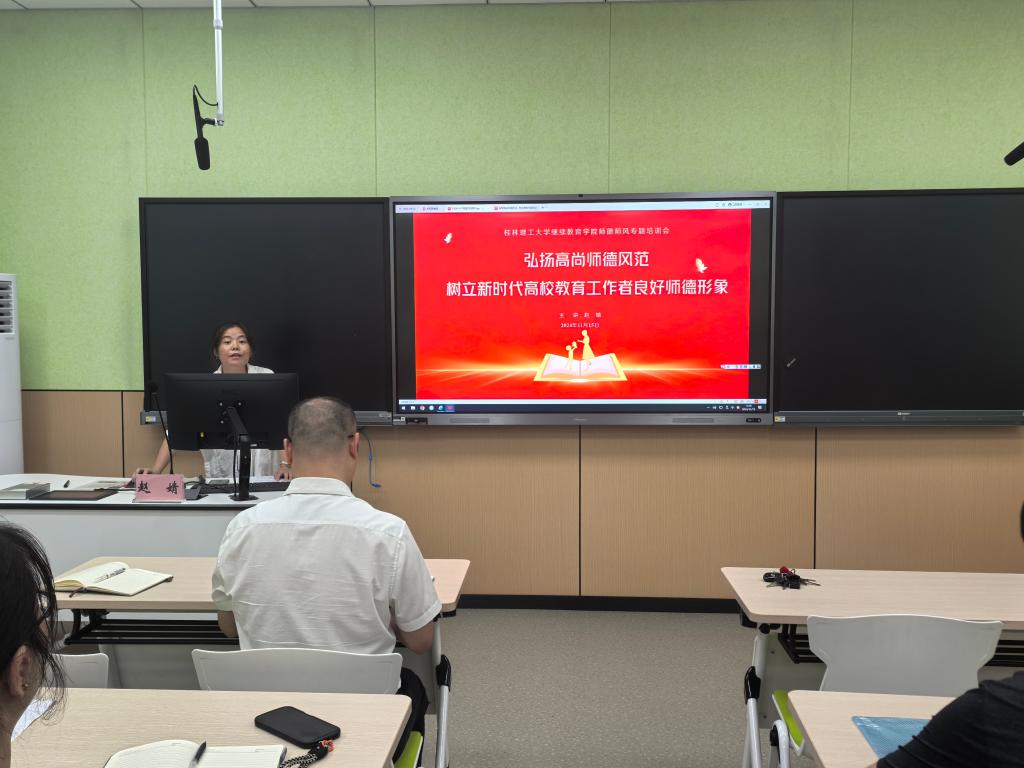 为提升教职工职业道德水平、增强法治意识、传递师德师风正能量,11月15日下午,伟德国际1946bv官网邀请学校党委教师工作部副部长、人事处副处长赵婧在屏风校区09203教室开展主题为“弘扬高尚师德风范 树立新时代高校教育工作者良好师德形象”师德师风培训会。党支部纪检委员、副院长张海林主持会议,全体教职工、合作办学单位管理人员及教师代表参加培训学习。