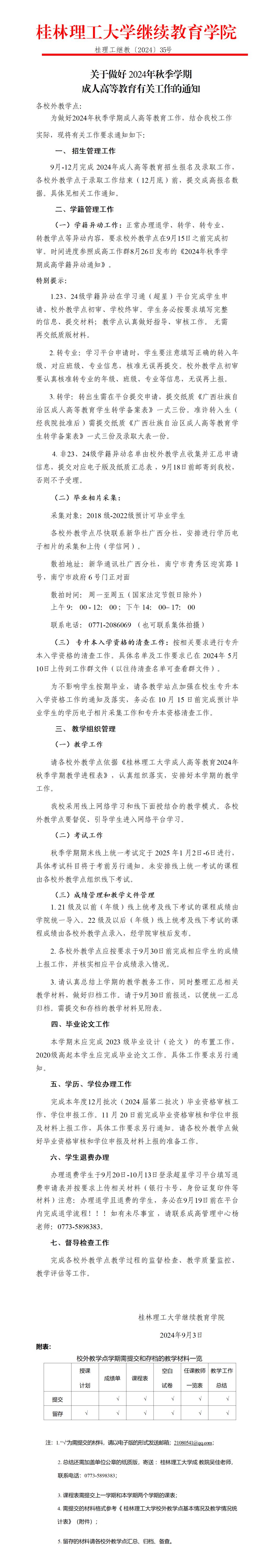 关于做好 2024年秋季学期成人高等教育有关工作的通知 发布者:成高管理中心 2024-09-03 已阅人次 (一审:吴佳 二审:林文钊 三审:李衡) 上一条:关于做好2024年秋季学期选课工作的通知 下一条:伟德国际1946bv官网2024年暑期值班表 关注我们