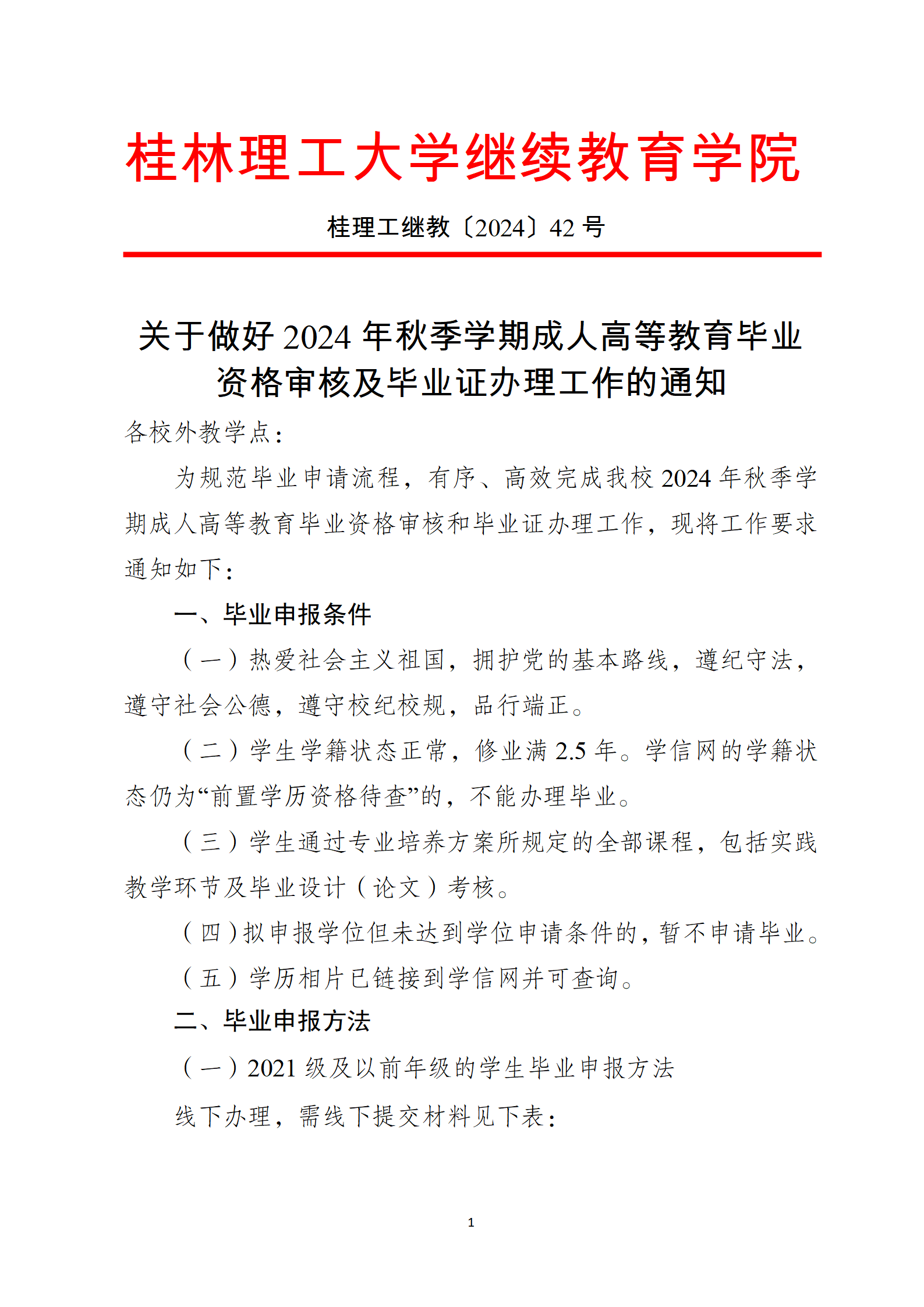 关于做好2024年秋季学期成人高等教育毕业资格审核及毕业证办理工作的通知