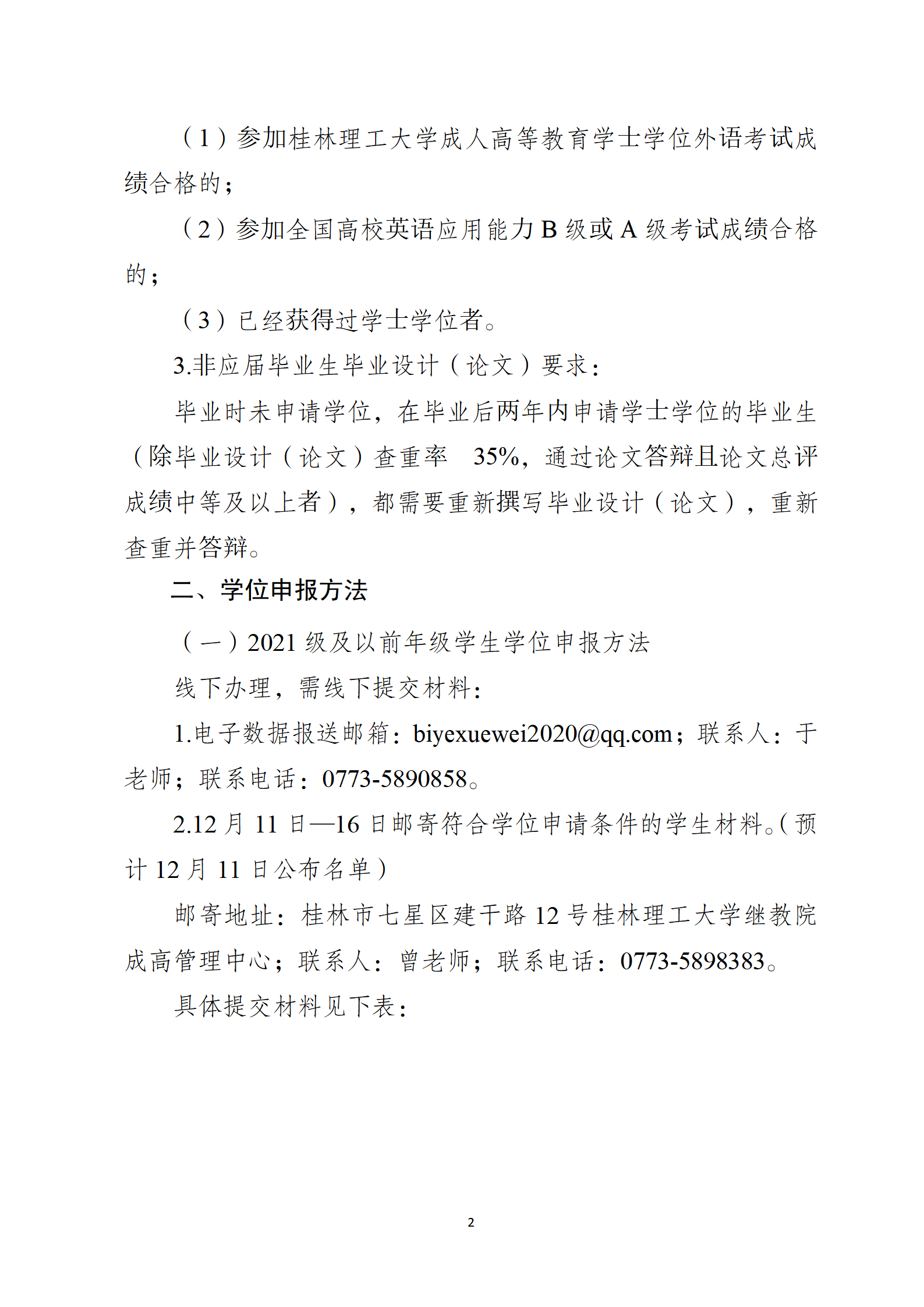 关于做好2024年秋季学期成人高等教育学士学位资格申报工作的通知 发布者:成高管理中心 2024-10-25 已阅人次 (一审:于德新 二审:林文钊 三审:李衡) 上一条:关于做好2024年秋季学期第二批线下面授学习的通知 下一条:关于做好2024年秋季学期成人高等教育毕业资格审核及毕业证办理工作的通知 关注我们
