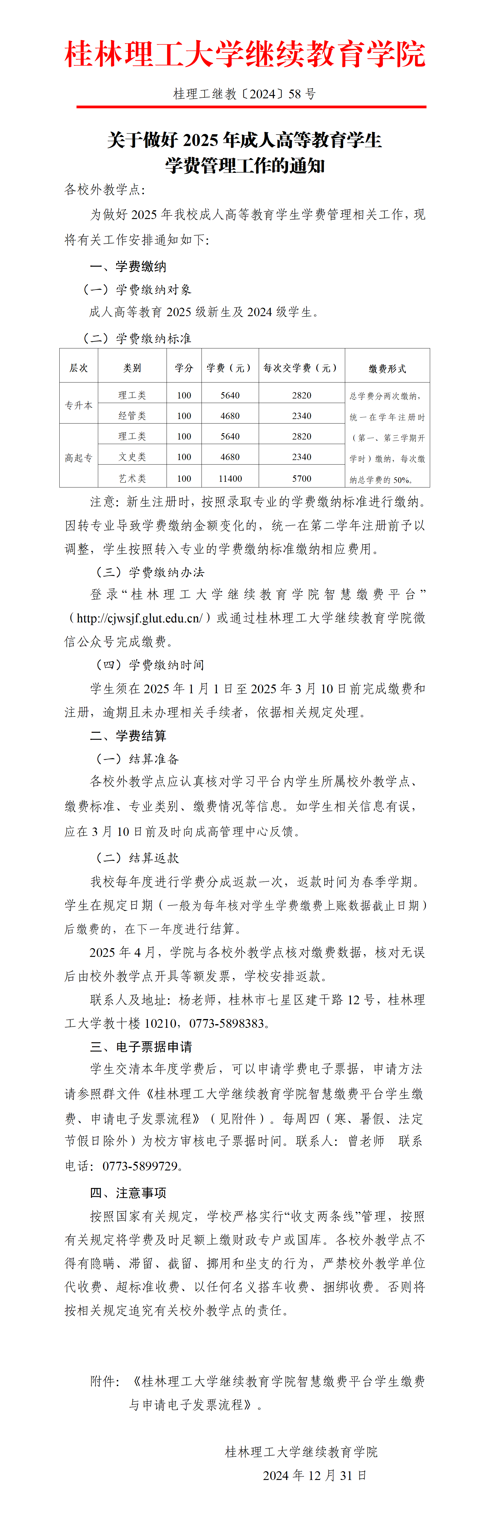 关于做好2025年成人高等教育学生学费管理工作的通知 发布者:成高管理中心 2024-12-31 已阅人次 (一审:杨燕芳 二审:林文钊 三审:李衡) 上一条:2025年考试日历 下一条:bv伟德源自英国始于19462025级成人高等教育新生入学须知 关注我们